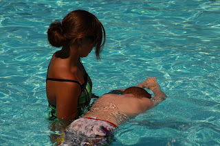 Nathan has been having a hard time with swim lessons. He IS very afraid of the water and would much rather stick to the side, never put his head under the water and have a floaty at all times! I have been challenging him to push himself and do everything they ask of him. Every day he gets a little better but I am hoping by the end he will be more comfortable with the water. I have told his teachers to be more firm with him- but they are young and afraid of being too "mean". Oh well we will get there in the end.